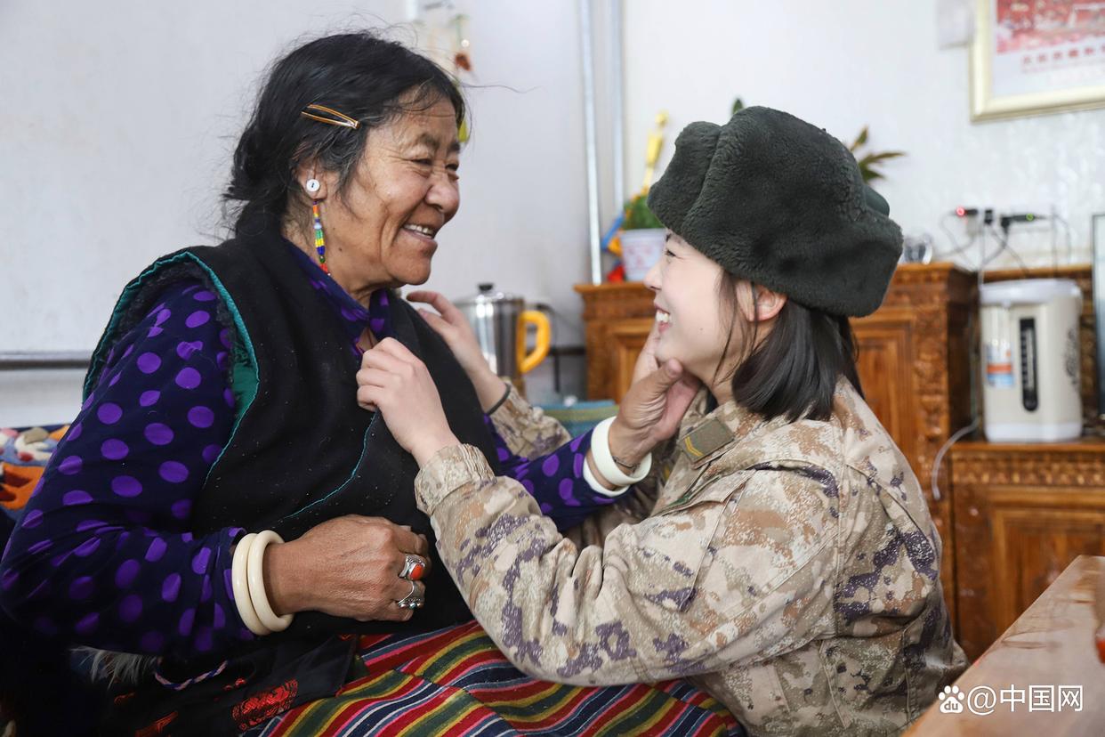 2024年3月1日,新疆軍區(qū)某工兵團官兵們走進阿里日土縣的敬老院,開展學雷鋒志愿服務(wù)活動。女兵王文靜與藏族阿媽溫馨互動的畫面,成為當天最暖心的一幕?!D片來源:中國網(wǎng)