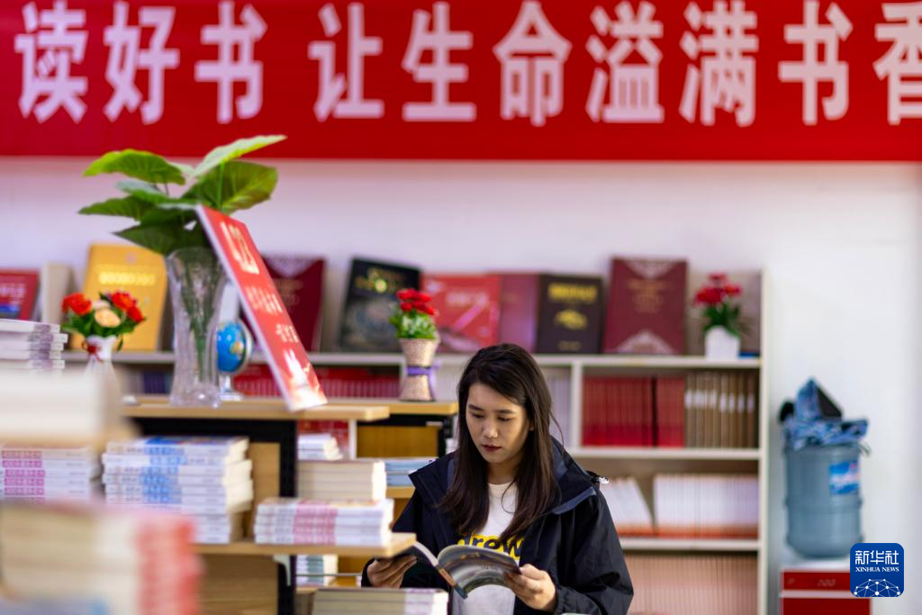 4月23日,顧客在墨脫縣新華書店挑選書籍。新華社記者 姜帆 攝