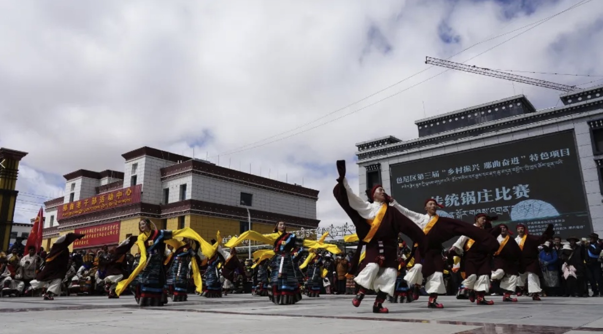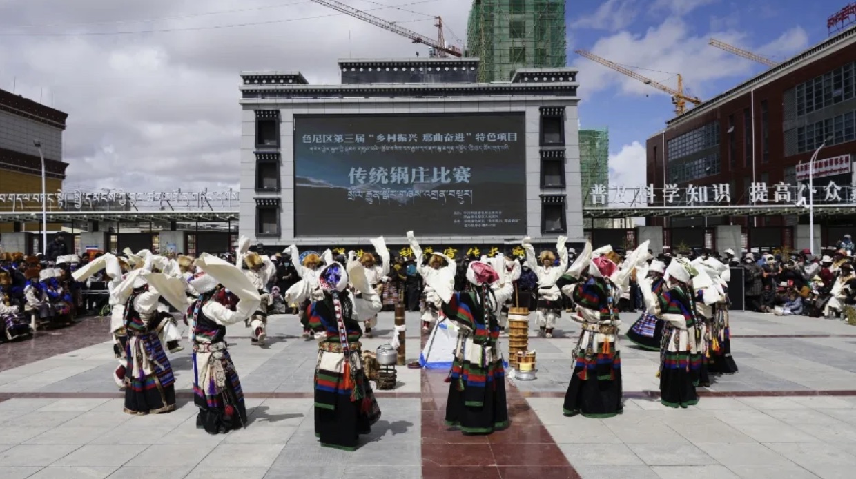 為進(jìn)一步傳承和發(fā)揚(yáng)民族文化,豐富牧民群眾的業(yè)余生活,4月26日,色尼區(qū)在那曲大廈廣場隆重舉行了第三屆“鄉(xiāng)村振興 那曲奮進(jìn)”特色項(xiàng)目傳統(tǒng)鍋莊比賽。此次比賽吸引了來自各鄉(xiāng)鎮(zhèn)的13支代表隊(duì)參與,他們身著盛裝,舞姿翩翩,展示了色尼區(qū)獨(dú)特的民族風(fēng)情和鍋莊文化的魅力。