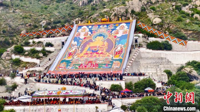 8月4日,拉薩哲蚌寺舉行展佛活動。 中新社記者 貢桑拉姆 攝