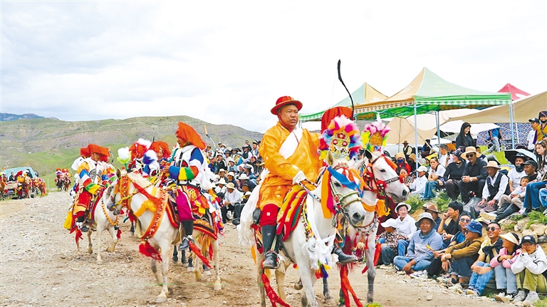 在邊交林鄉(xiāng)當(dāng)杰村“望果節(jié)”活動(dòng)現(xiàn)場(chǎng),隨著激昂的《運(yùn)動(dòng)員進(jìn)行曲》,當(dāng)杰村“平措林望果節(jié)”活動(dòng)拉開帷幕,38名馬術(shù)運(yùn)動(dòng)員、38名射箭運(yùn)動(dòng)員在2萬(wàn)多名觀眾的歡呼聲中邁入現(xiàn)場(chǎng)。