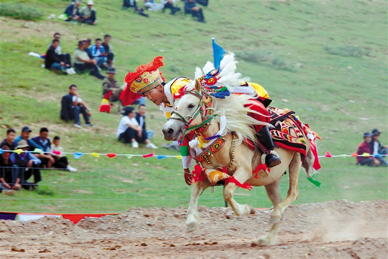 據(jù)悉,賽馬是西藏各地為慶祝豐收舉行“望果節(jié)”(賽馬節(jié))時(shí)的傳統(tǒng)慶典活動(dòng),是群眾最為喜愛、流傳最廣的體育運(yùn)動(dòng)之一?!巴?jié)”作為一項(xiàng)具有悠久歷史的傳統(tǒng)節(jié)日,每年都會(huì)在林周縣加榮村如期舉行。