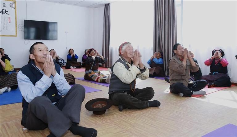 墨竹工卡縣老年人日間照料中心老人正在練瑜伽。圖由 果珍 吉宗 提供