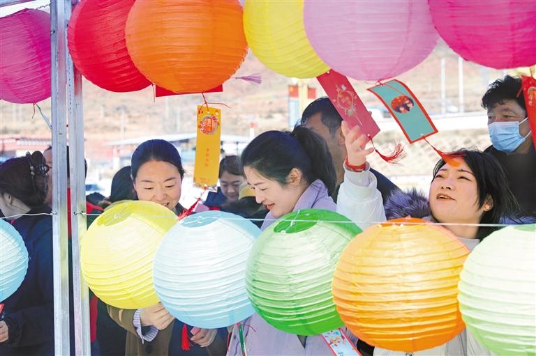 圖為昌都市貢覺(jué)縣舉辦藏漢雙語(yǔ)猜燈謎活動(dòng),吸引了眾多市民參與。通訊員 董燕 卓嘎曲措 田聆妃 攝