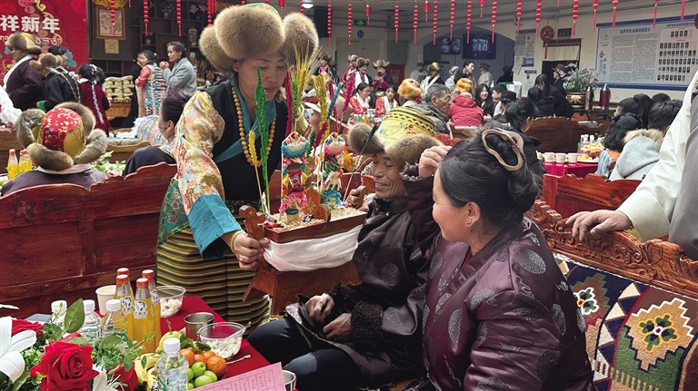 拉薩市社會福利院工作人員白央告訴記者,藏歷新年前一周,她們就為老人們洗澡、修剪指甲,對福利院進(jìn)行全面大掃除。為營造節(jié)日氛圍,還提前為老人裝扮居住環(huán)境,掛上紅燈籠,擺上切瑪盒等?!斑@是我在福利院工作的第二年。藏歷新年雖不能陪伴在父母身邊,但與老人們一同過年,讓我深感幸福且意義重大?!?/p>
