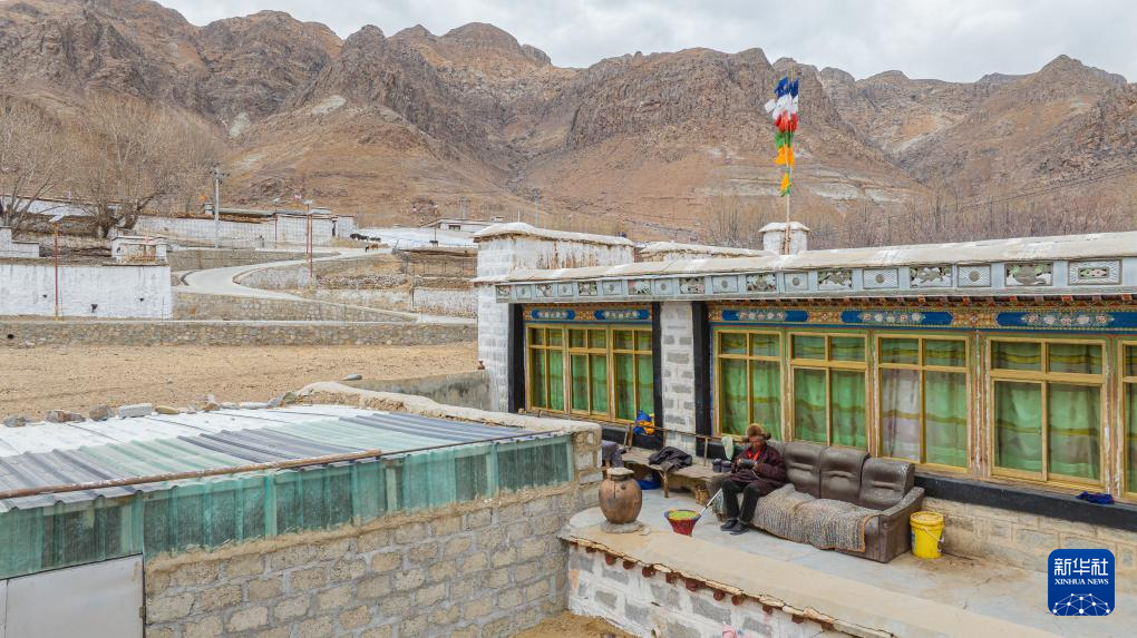 索扎老人在自家院子里聽(tīng)收音機(jī)(3月20日攝,無(wú)人機(jī)照片)。新華社記者 丁增尼達(dá) 攝