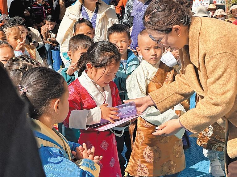 圖為工作人員為答對問題的小朋友頒發(fā)獎品。記者 拉巴桑姆 攝