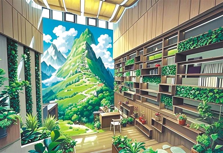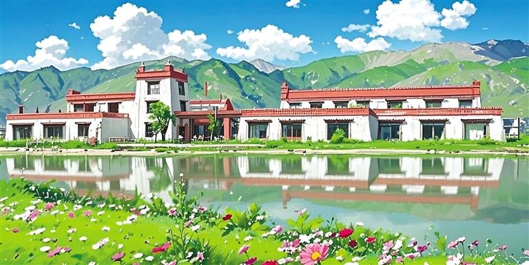 “我就是想以動畫風(fēng)格給大家展示不一樣的堆龍。”旦增拉姆說。只見她又將照片導(dǎo)入AI圖片生成軟件內(nèi),AI自動識別圖像元素——經(jīng)幡的布料特性、水流的物理參數(shù)、建筑材質(zhì)的反光數(shù)據(jù)。輕點(diǎn)“生成”按鈕,1分23秒后,一張動畫風(fēng)格的Shadada CoffeeX新型公共文化空間的圖片便呈現(xiàn)在眼前。重點(diǎn)不是技術(shù),是審美把關(guān),旦增拉姆指著屏幕上的失敗案例:“AI把青稞田處理成糖果色卡通,把圖書館渲染成賽博朋克風(fēng)格。我每天要調(diào)整無數(shù)次參數(shù),就像教AI理解什么是藏地美學(xué)。”她用最現(xiàn)代化的數(shù)字工具,“描繪”著堆龍德慶區(qū)新的光影詩篇。