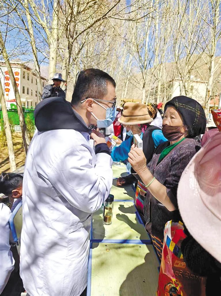 圖為北京市門頭溝區(qū)援藏醫(yī)療隊(duì)正在古榮鎮(zhèn)開展義診活動。記者 盧文靜 攝