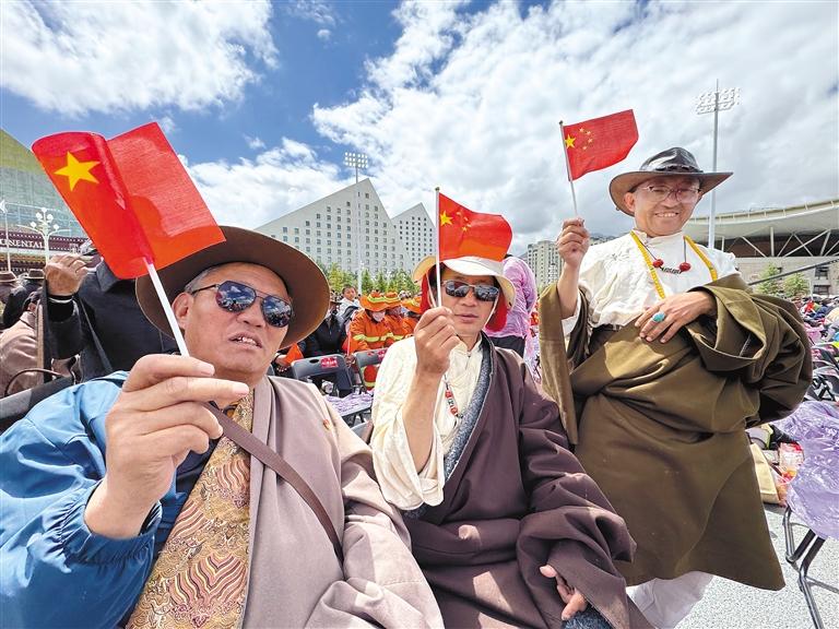 演出中,不同民族的文藝志愿者齊聚一堂。漢族、藏族、蒙古族、彝族等各民族藝術(shù)家攜手合作,用藝術(shù)搭建起溝通的橋梁。他們用歌聲、舞蹈、相聲、朗誦等多種藝術(shù)形式,深情歌頌新時(shí)代黨的治藏方略,生動(dòng)展現(xiàn)西藏自治區(qū)成立60年來(lái)的滄桑巨變,傳遞民族團(tuán)結(jié)的深厚情誼,讓現(xiàn)場(chǎng)觀眾沉浸在藝術(shù)的氛圍中。