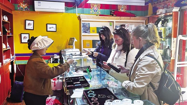 國(guó)際旅行商在文創(chuàng)店內(nèi)購(gòu)買紀(jì)念品。