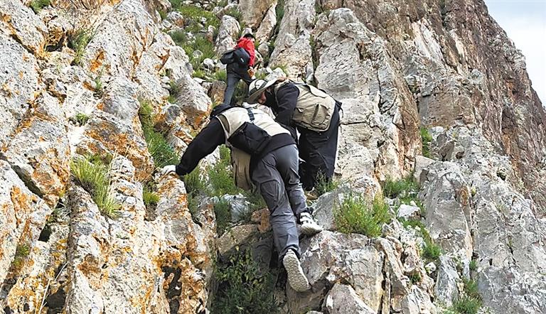 文物普查工作充滿(mǎn)挑戰(zhàn)。每一處文物都是歷史的縮影,需謹(jǐn)慎對(duì)待;每一處遺址都是謎題,等待她們?nèi)ソ獯?。她們彎腰丈量殘破石墻,跪地比?duì)紋樣,不放過(guò)任何細(xì)節(jié)。工作時(shí)高度集中,翻山越溝成常態(tài),直至夜幕降臨,才帶著筆記本和存儲(chǔ)卡返回駐點(diǎn)。