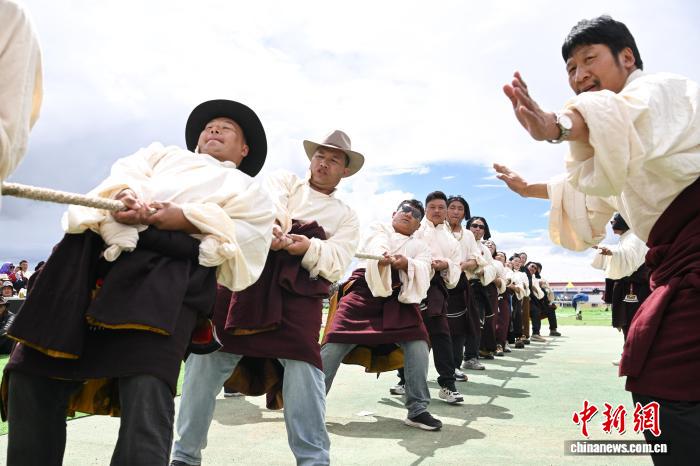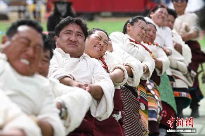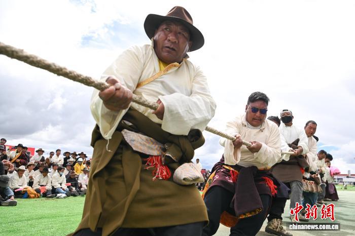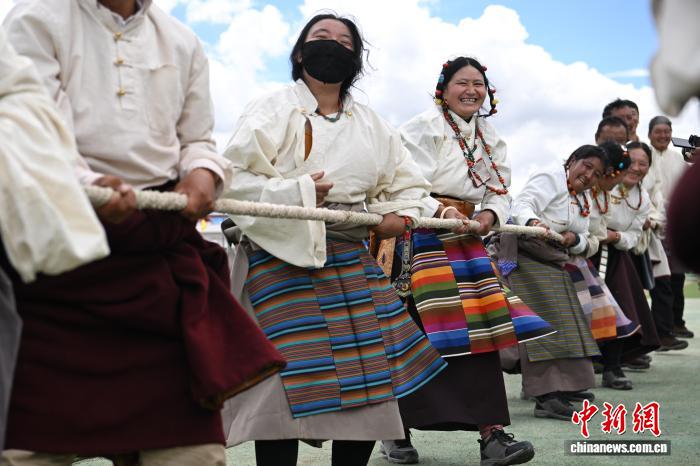 西藏那曲恰青賽馬節(jié) 男女混合拔河比賽激情上演