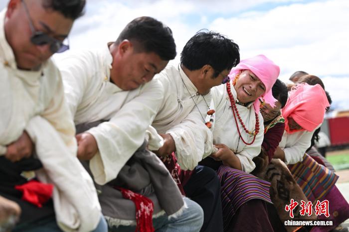 西藏那曲恰青賽馬節(jié)男女混合拔河比賽激情上演