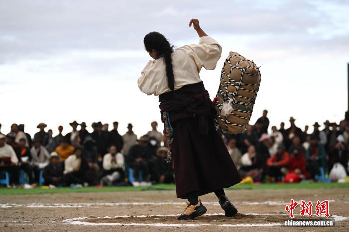 9月5日,2025年那曲市恰青賽馬節(jié)在格薩爾賽馬場(chǎng)開幕。當(dāng)日,賽場(chǎng)中不僅有駿馬飛馳,更有力量的精彩較量。在抱石頭比賽現(xiàn)場(chǎng),來(lái)自那曲市各縣(區(qū))的男女選手們鼓足干勁,挑戰(zhàn)自我。這項(xiàng)傳統(tǒng)體育項(xiàng)目,展現(xiàn)了藏北人民的堅(jiān)韌與力量。圖為女參賽選手在抱石頭比賽。中新社記者 貢嘎來(lái)松 攝