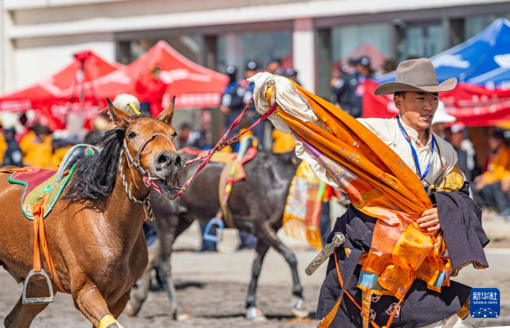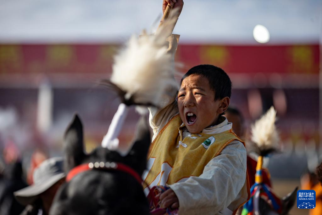 9月7日,騎手在傳統(tǒng)大跑項(xiàng)目前的傳統(tǒng)煨?;顒又衅砀?。新華社記者 姜帆 攝