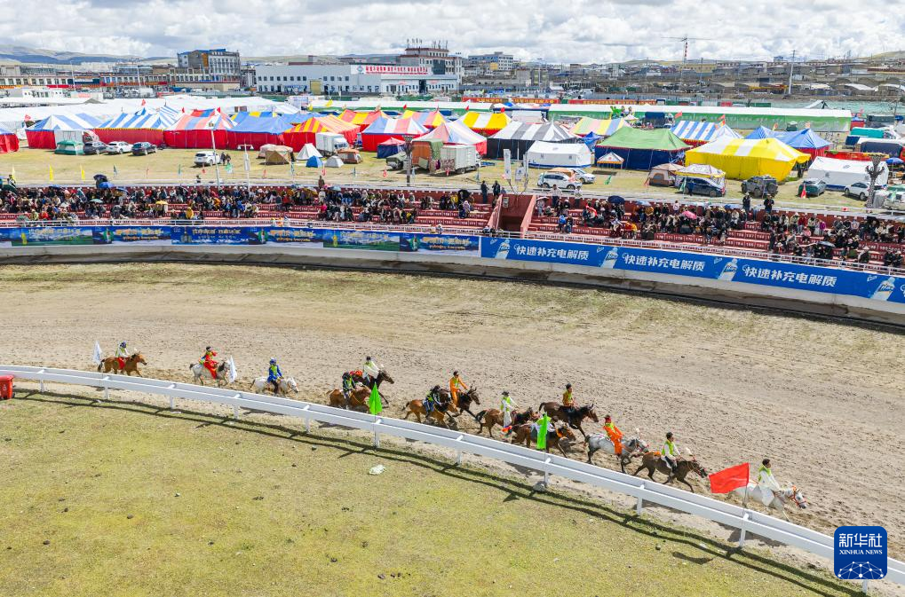 這是9月6日拍攝的恰青賽馬節(jié)比賽現(xiàn)場(無人機(jī)照片)。新華社記者 丁增尼達(dá) 攝