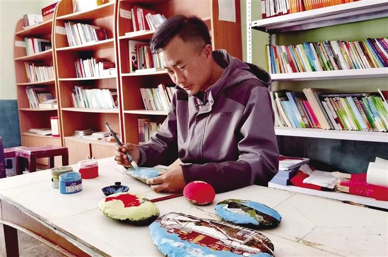 張銀波駐村期間,通過手繪石頭畫慶祝中國共產(chǎn)黨成立100周年。