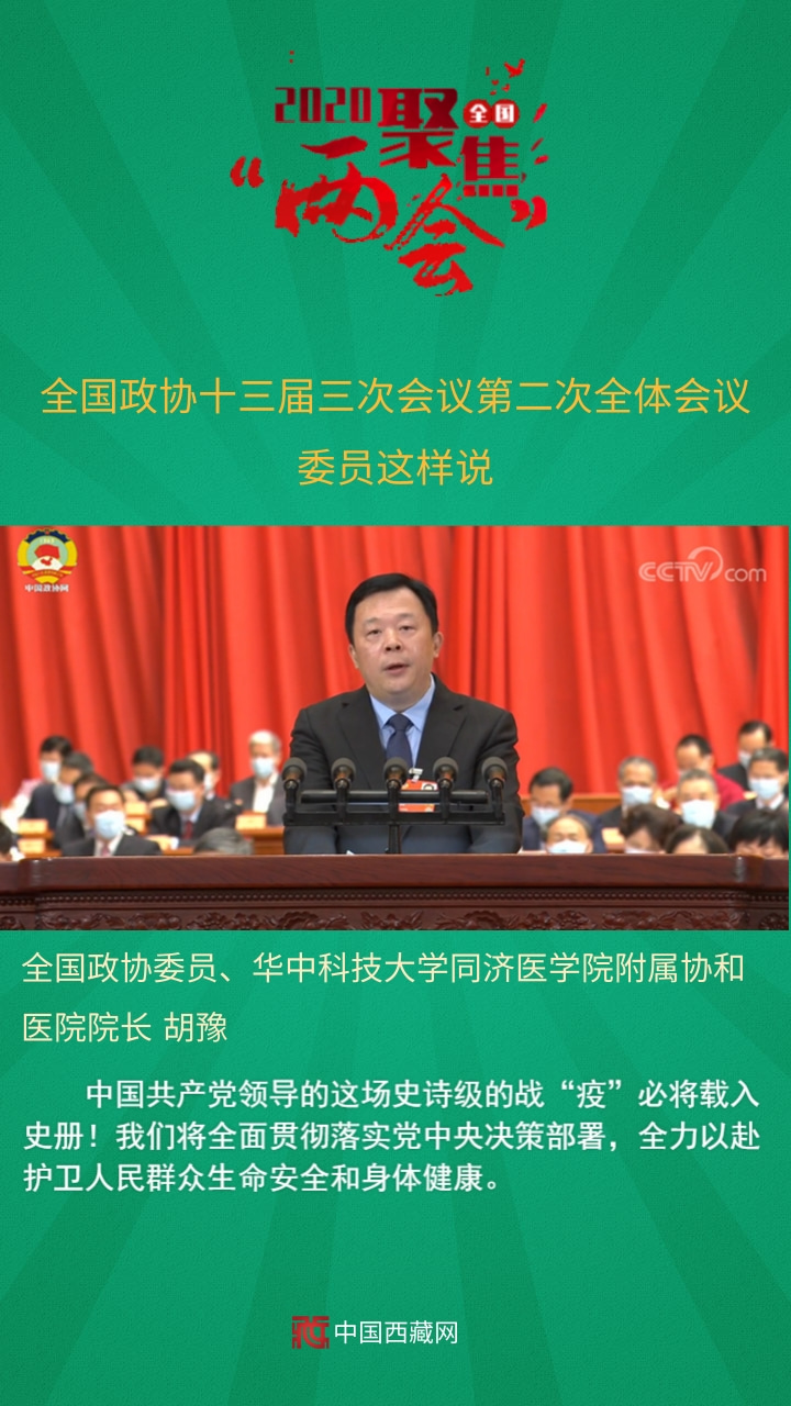 全國政協(xié)委員、華中科技大學同濟醫(yī)學院附屬協(xié)和醫(yī)院院長胡豫發(fā)言說,中國共產(chǎn)黨領(lǐng)導的這場史詩級的戰(zhàn)“疫”必將載入史冊!我們將全面貫徹落實黨中央決策部署,全力以赴護衛(wèi)人民群眾生命安全和身體健康。