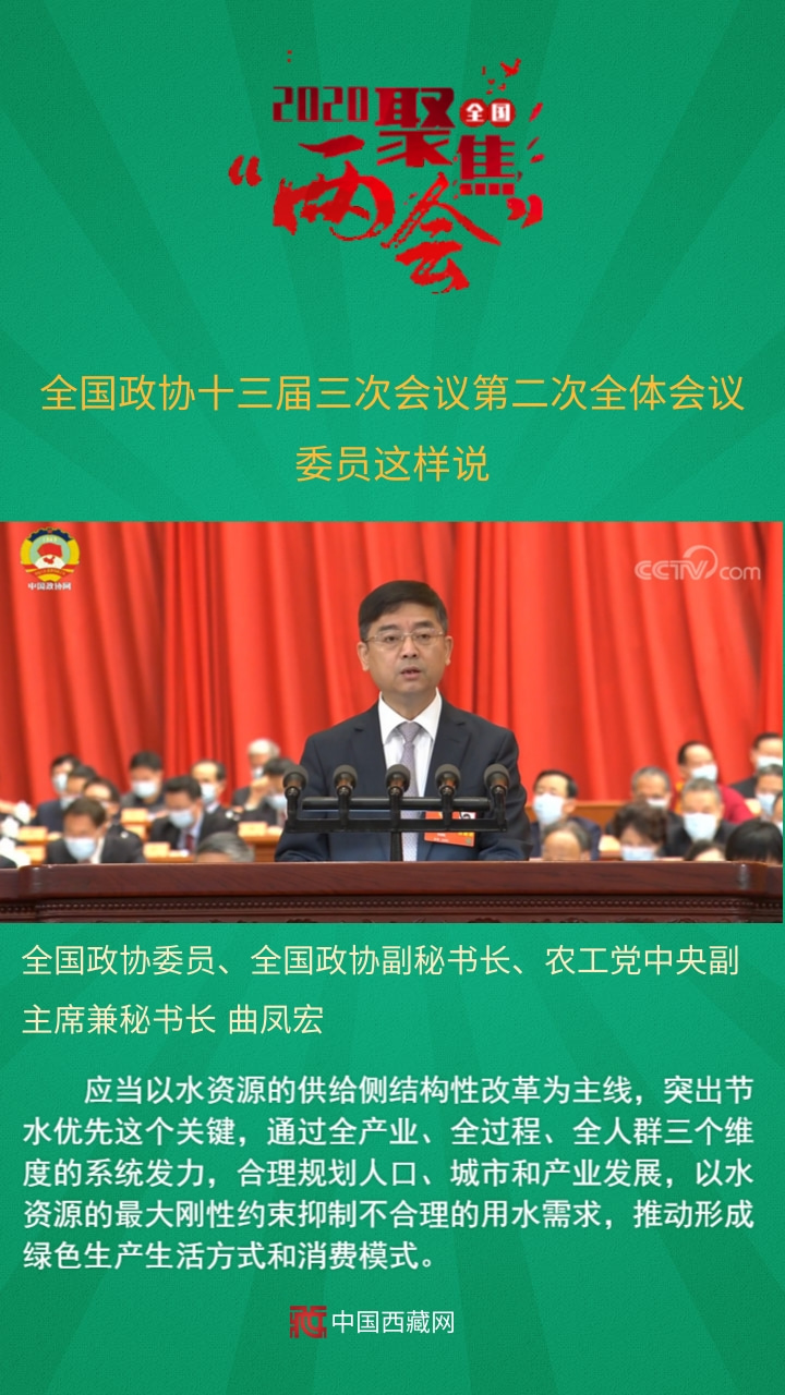全國政協(xié)委員、全國政協(xié)副秘書長、農(nóng)工黨中央副主席兼秘書長曲鳳宏發(fā)言說,應當以水資源的供給側(cè)結(jié)構(gòu)性改革為主線,突出節(jié)水優(yōu)先這個關(guān)鍵,通過全產(chǎn)業(yè)、全過程、全人群三個維度的系統(tǒng)發(fā)力,合理規(guī)劃人口、城市和產(chǎn)業(yè)發(fā)展,以水資源的最大剛性約束抑制不合理的用水需求,推動形成綠色生產(chǎn)生活方式和消費模式。