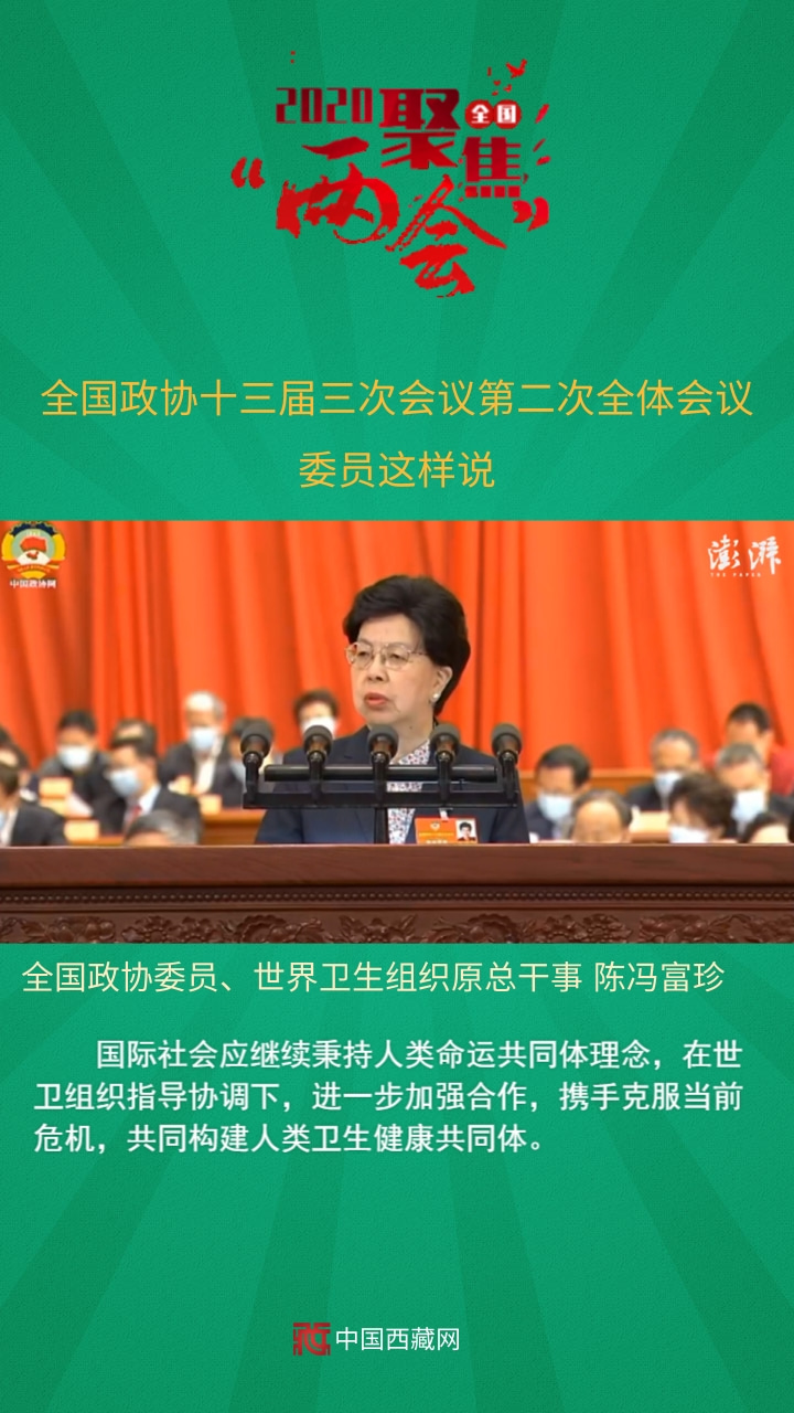 全國政協(xié)委員、世界衛(wèi)生組織原總干事陳馮富珍發(fā)言說,國際社會應繼續(xù)秉持人類命運共同體理念,在世衛(wèi)組織指導協(xié)調(diào)下,進一步加強合作,攜手克服當前危機,共同構(gòu)建人類衛(wèi)生健康共同體。
