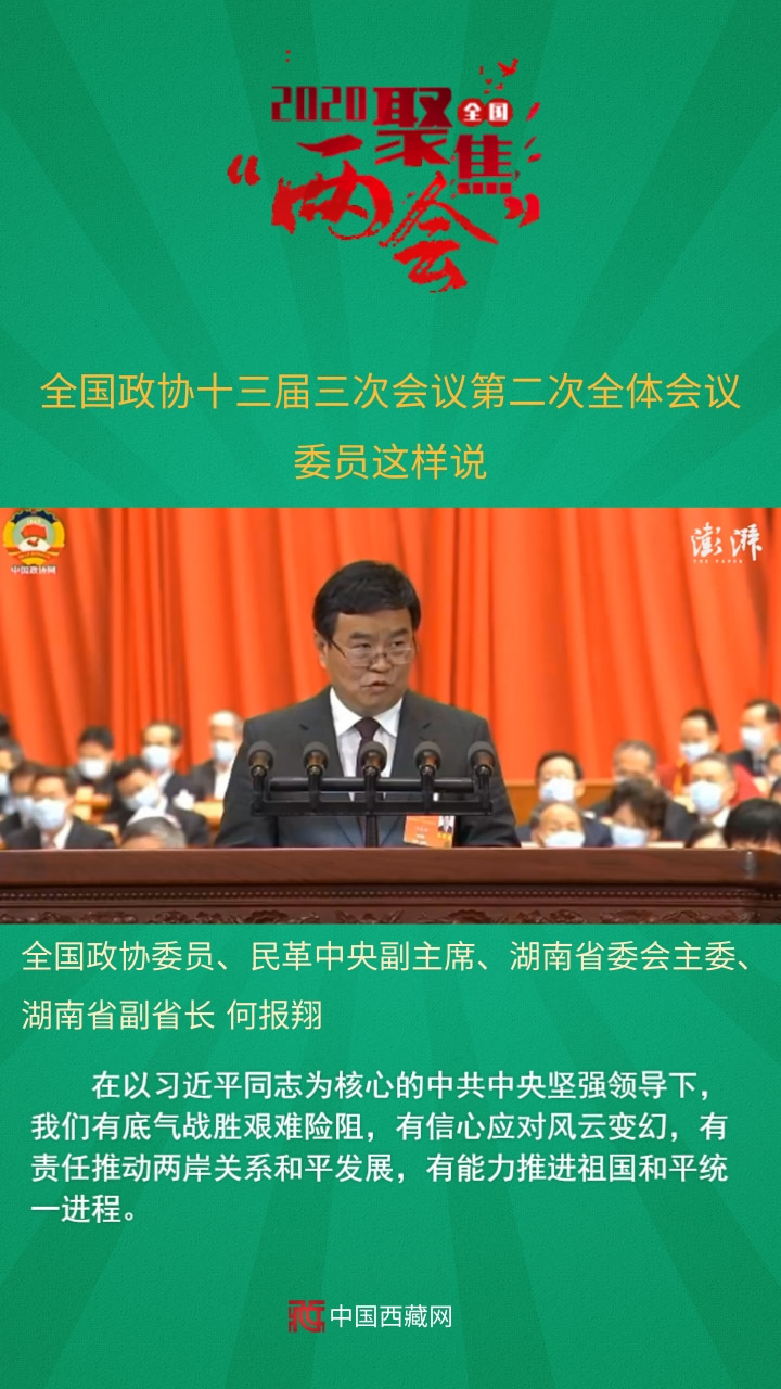 全國政協(xié)委員、民革中央副主席、湖南省委會主委、湖南省副省長何報翔發(fā)言說,在以習近平同志為核心的中共中央堅強領(lǐng)導下,我們有底氣戰(zhàn)勝艱難險阻,有信心應對風云變幻,有責任推動兩岸關(guān)系和平發(fā)展,有能力推進祖國和平統(tǒng)一進程。