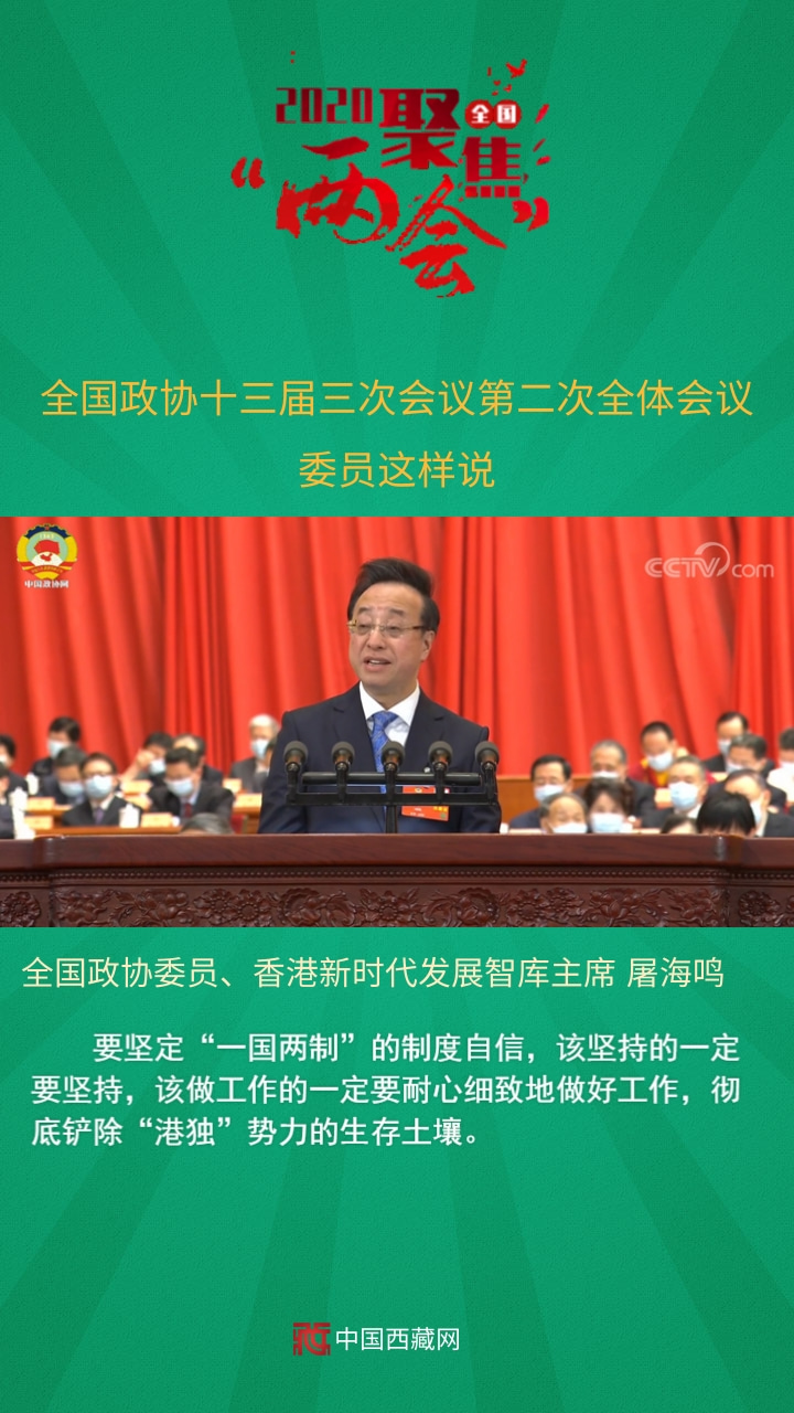 全國政協(xié)委員、香港新時代發(fā)展智庫主席屠海鳴發(fā)言說,要堅定“一國兩制”的制度自信,該堅持的一定要堅持,該做工作的一定要耐心細致地做好工作,徹底鏟除“港獨”勢力的生存土壤。