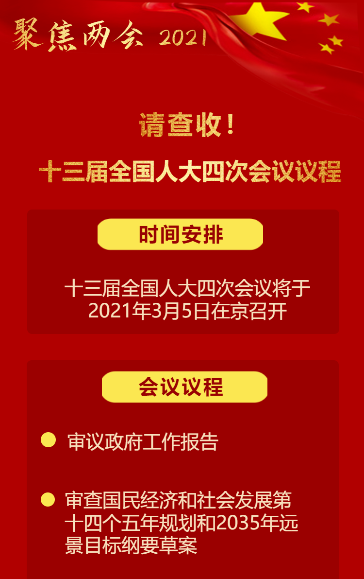 【聚焦兩會(huì) 2021】請(qǐng)查收!十三屆全國(guó)人大四次會(huì)議議程
