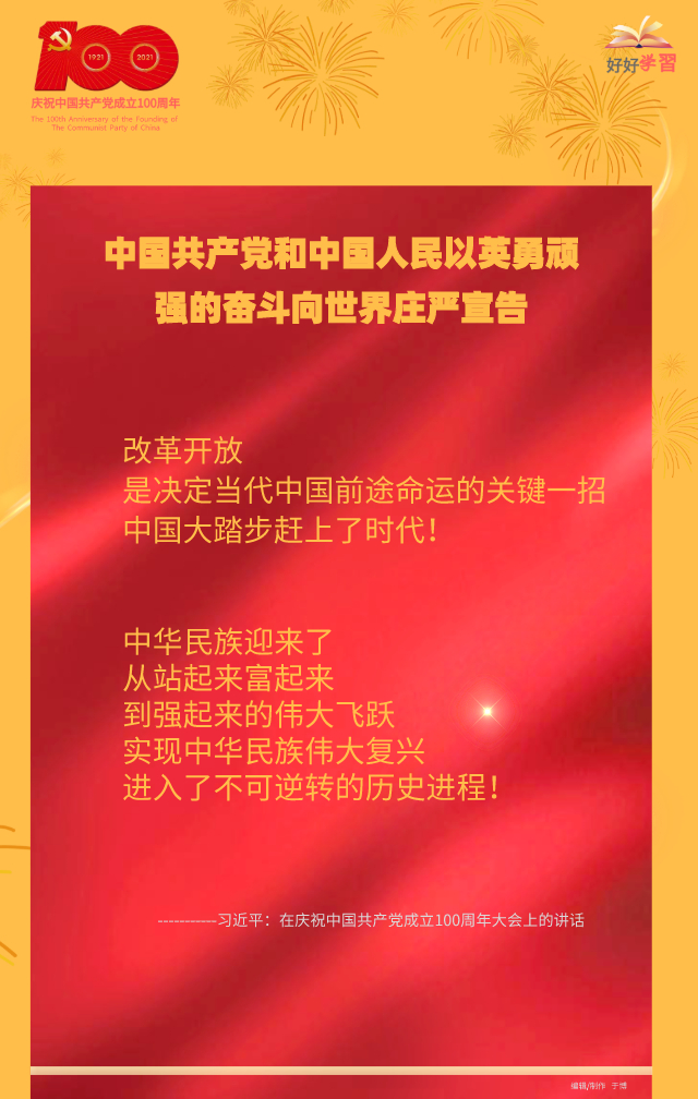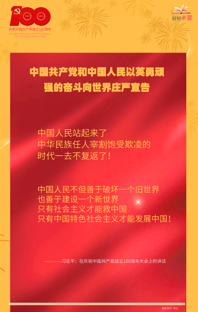 海報(bào)|習(xí)近平在慶祝中國共產(chǎn)黨成立一百周年大會(huì)上重要講話金句