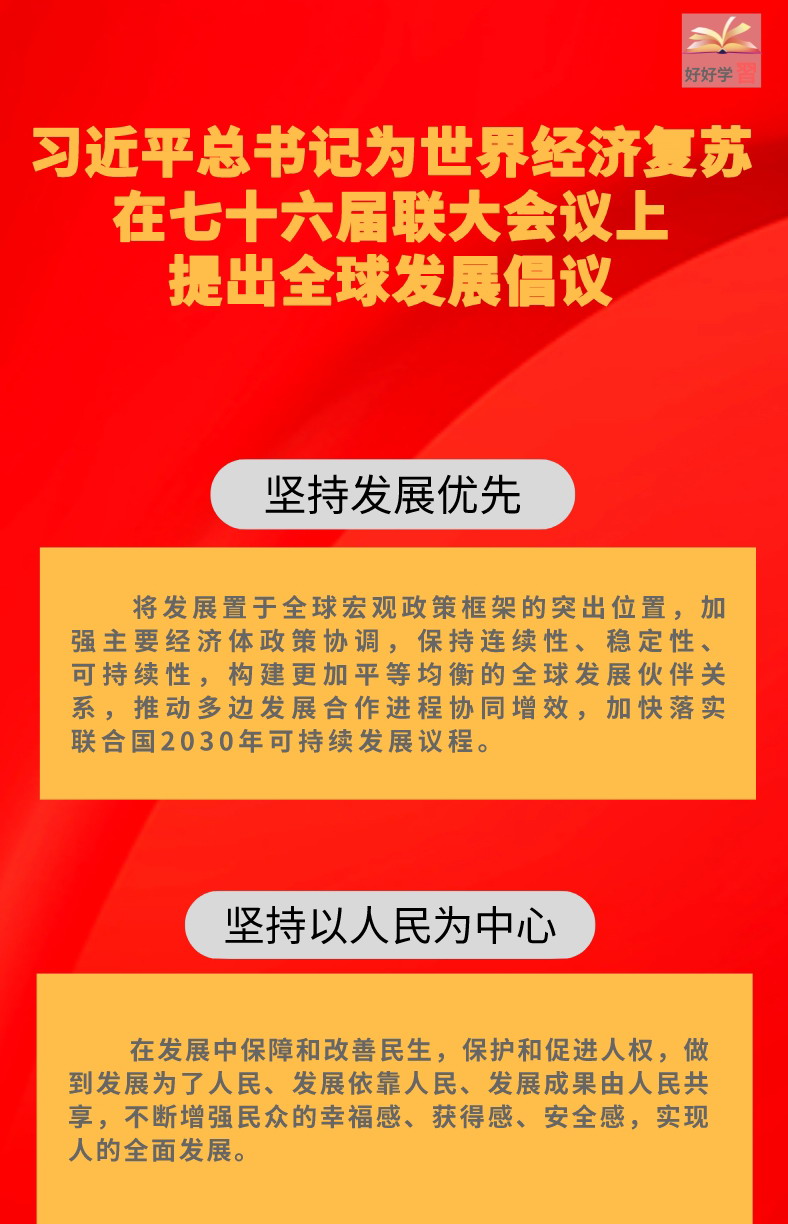 長圖|習(xí)近平總書記為世界經(jīng)濟(jì)復(fù)蘇在七十六屆聯(lián)大會(huì)議上提出全球發(fā)展倡議