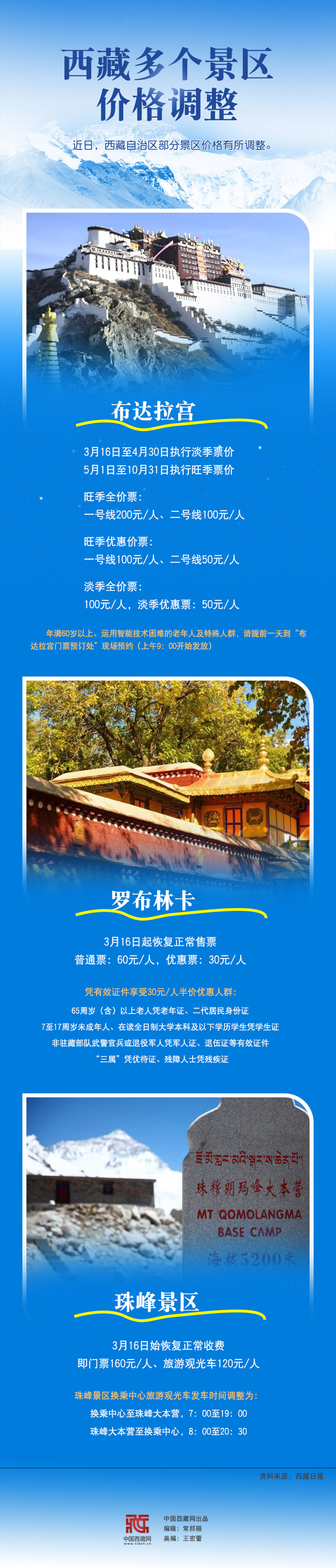 西藏多個景區(qū)價格調(diào)整