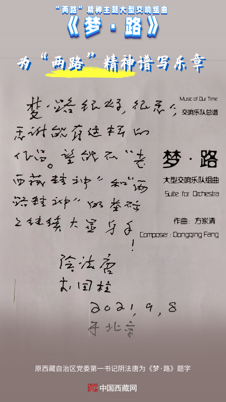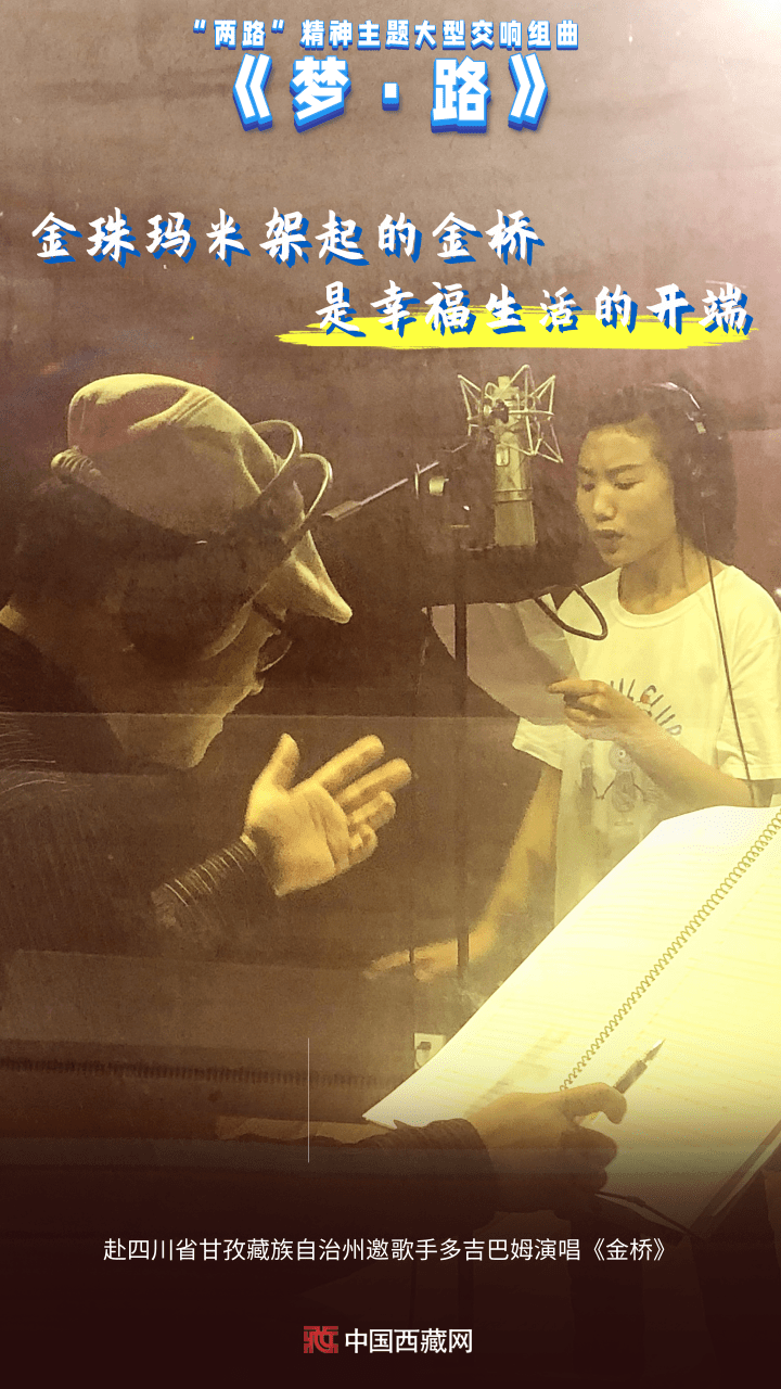 創(chuàng)作團(tuán)隊(duì)三次深入西藏、四川、青海等省區(qū)市的二十多個(gè)“兩路”相關(guān)歷史地域,拜訪數(shù)十位民族民間器樂演奏、聲樂演唱、藏戲表演藝術(shù)家和國家級(jí)非物質(zhì)文化遺產(chǎn)傳承人,對(duì)藏族風(fēng)格音樂素材進(jìn)行詳盡細(xì)致的采集,從中國愛樂樂團(tuán)演奏家們的傾情演奏,到四川省甘孜藏族自治州金剛寺大殿采聲,從錄制藏族姑娘銀鈴天籟般的嗓音,到83歲高齡的國家級(jí)非物質(zhì)文化遺產(chǎn)傳承人的獻(xiàn)唱山歌……《夢(mèng)·路》讓大型交響樂和原生態(tài)聲音融合、碰撞、組合,用音符刻畫了中華筑路英雄馳騁世界屋脊的偉大樂章。(中國西藏網(wǎng) 編輯、制作/王茜 供圖/方崠清)