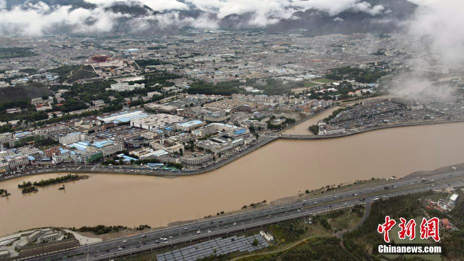 7月20日,受降雨影響,拉薩河中游水位持續(xù)上漲。西藏自治區(qū)氣象臺7月19日發(fā)布今年進入主汛期以來的第一次強降雨藍色預警,受高原切變線和暖濕氣流影響,19日20時至20日20時,西藏林芝有中到大雨,部分鄉(xiāng)鎮(zhèn)有大到暴雨;拉薩、山南南部、那曲東部、昌都北部和日喀則南部有小到中雨,部分地方有大雨。中新社記者 江飛波 攝