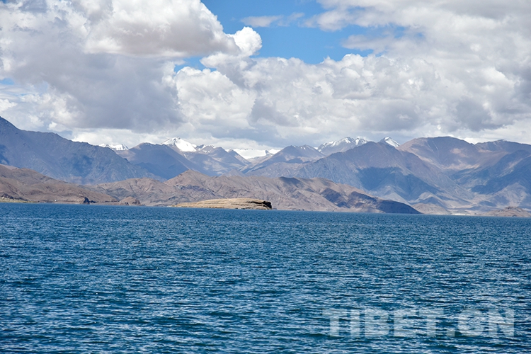 中國西藏網(wǎng)訊 汽車從西藏自治區(qū)阿里地區(qū)日土縣城出發(fā)后,繼續(xù)沿著國道219線行駛約12公里,連綿山巒間,一片蔚藍映入眼簾。這便是班公湖。