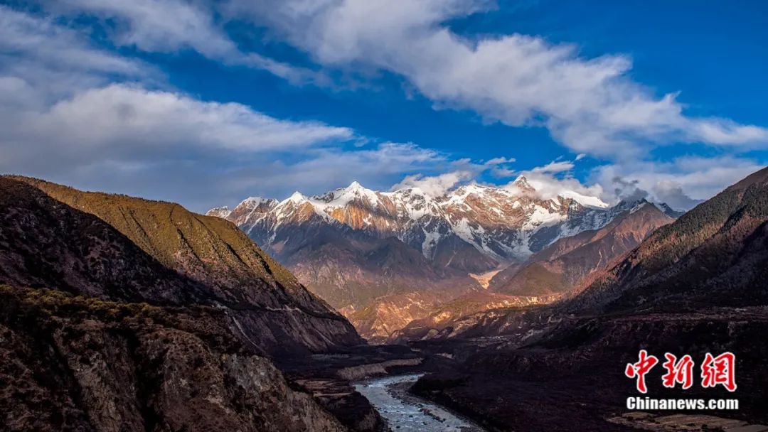 時值秋末冬初,全長504.6公里,最深處6009米的雅魯藏布大峽谷呈現(xiàn)出別樣巍峨壯觀,兩岸五彩交織的森林上雪峰林立,谷底奔涌的雅魯藏布江碧水繞田,宛若童話中的仙境。