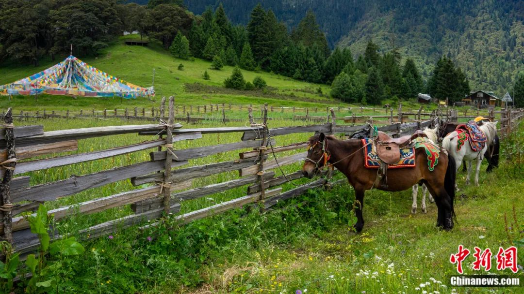 同時,藏式農(nóng)家樂、民宿仍由魯朗當?shù)卮迕窠?jīng)營,在特色民俗村扎西崗村,民居、牧場、田園保留了原汁原味的藏族特色,形成了浮云繞林海、林海圍田園、花海擁村落的別樣場景。