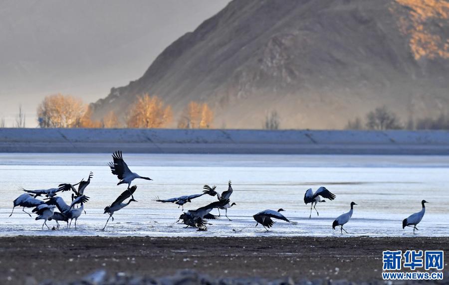 冬日,大批黑頸鶴在西藏拉薩市林周縣境內(nèi)棲息、覓食。 林周縣黑頸鶴自然保護(hù)區(qū)建立于1993年,2003年被設(shè)立為國家級自然保護(hù)區(qū),是雅魯藏布江中游自然保護(hù)區(qū)的核心部分,在每年的11月底至12月初,這里便會迎來成群的黑頸鶴過冬。