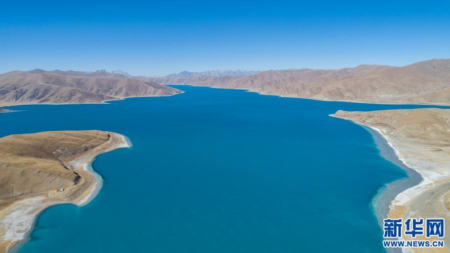 這是1月10日拍攝的羊卓雍錯(cuò)景色(無人機(jī)照片)。新華社記者 孫非 攝