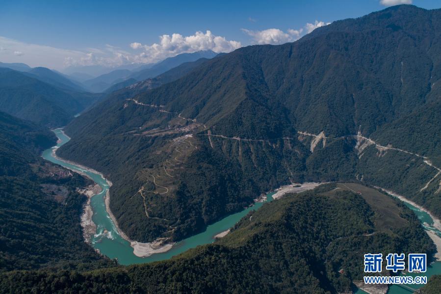 這是墨脫縣果果塘大拐彎(2月8日攝,無人機照片)。新華社記者 孫非 攝