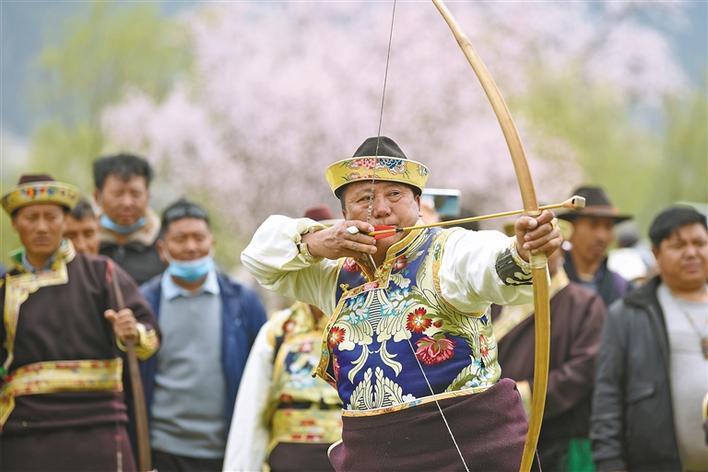 桃花節(jié)期間,巴宜區(qū)舉辦的工布畢秀競(jìng)技比賽。 王珊 小宜 攝