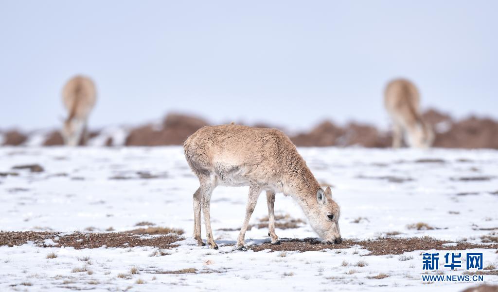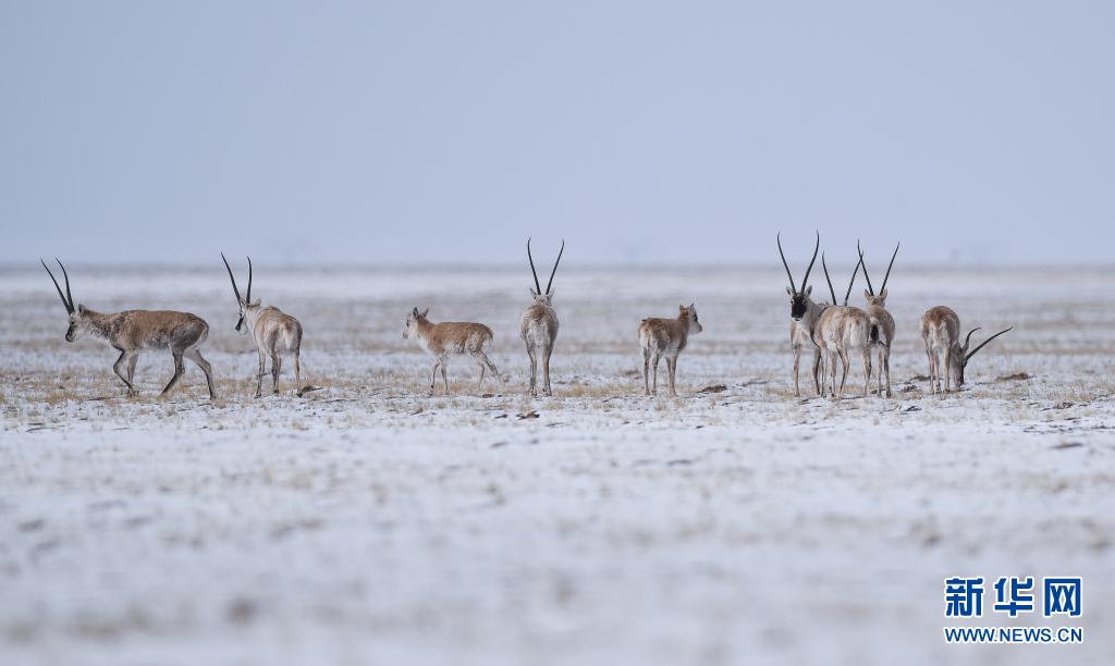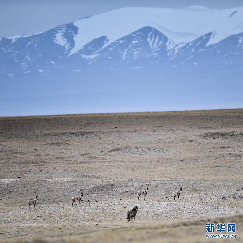 4月20日,藏羚羊在三江源可可西里地區(qū)活動。新華社記者 吳剛 攝