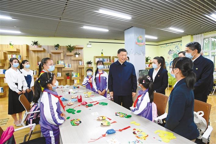 6月7日至9日,中共中央總書(shū)記、國(guó)家主席、中央軍委主席習(xí)近平在青??疾?。這是7日下午,習(xí)近平在西寧市城西區(qū)文匯路街道文亭巷社區(qū)閱覽室,了解社區(qū)向青少年提供公益性課后托管服務(wù)情況。新華社記者 李學(xué)仁 攝