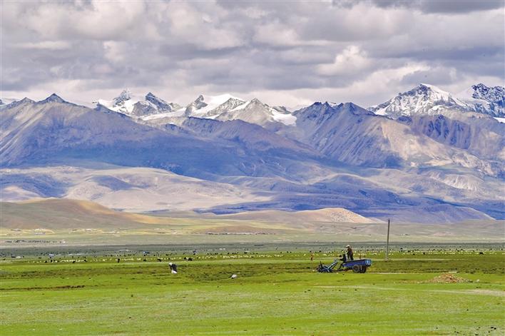 夏日里,拉薩市當(dāng)雄縣境內(nèi)的天然草場綠草如茵,景色優(yōu)美。圖為當(dāng)雄縣格達(dá)鄉(xiāng)境內(nèi)的草場。新華社記者 張汝鋒 攝