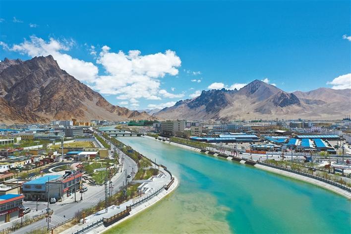 站在尼色日山眺望,綠植圍繞城市,樹木成林,生機勃勃;鳥瞰年楚河畔,大地盡披綠裝,綠茵如毯,綿延天際;漫步鄉(xiāng)野間,道路兩旁的樹木隨風搖曳,綠意盎然,房屋村舍掩映在錯落有致的綠植之中……如今的日喀則,可謂滿城擁翠,綠意濃濃。