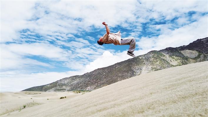 7月29日,記者從拉薩市驅(qū)車近100公里,來到位于山南市扎囊縣扎若村的沙漠公園,沙丘藝術(shù)公園幾個大字赫然映入眼簾。進(jìn)入景區(qū),沙海起伏連綿,掀起金色波浪。因?yàn)榍耙蝗談傁逻^雨,地勢降低的地段里面積了一些水,在金黃的沙漠上,形成了大大小小的水坑,清澈見底,倒映著藍(lán)天白云,點(diǎn)綴了整片沙海。