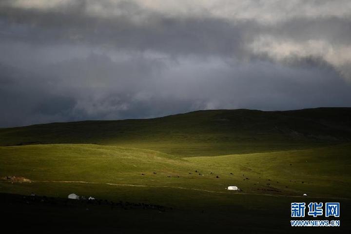 這是8月3日在青海省果洛藏族自治州瑪沁縣當(dāng)洛鄉(xiāng)貢龍村拍攝的夏季草場(chǎng)。新華社記者 張龍 攝