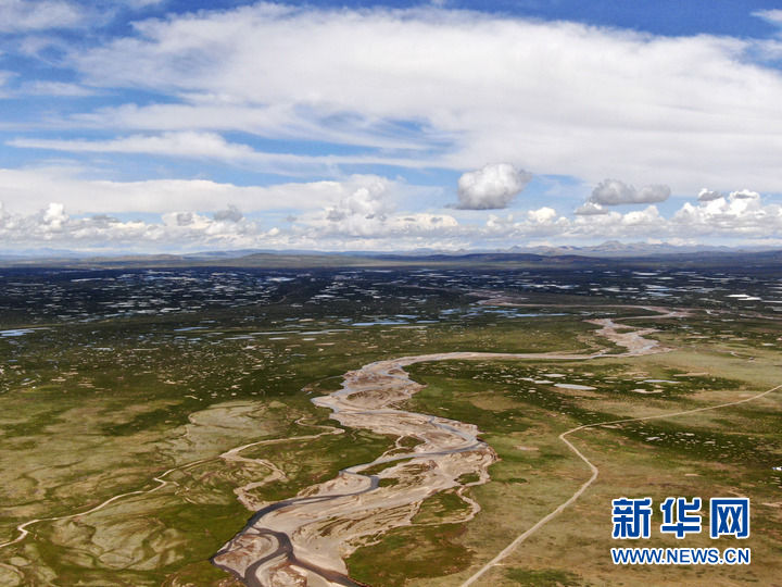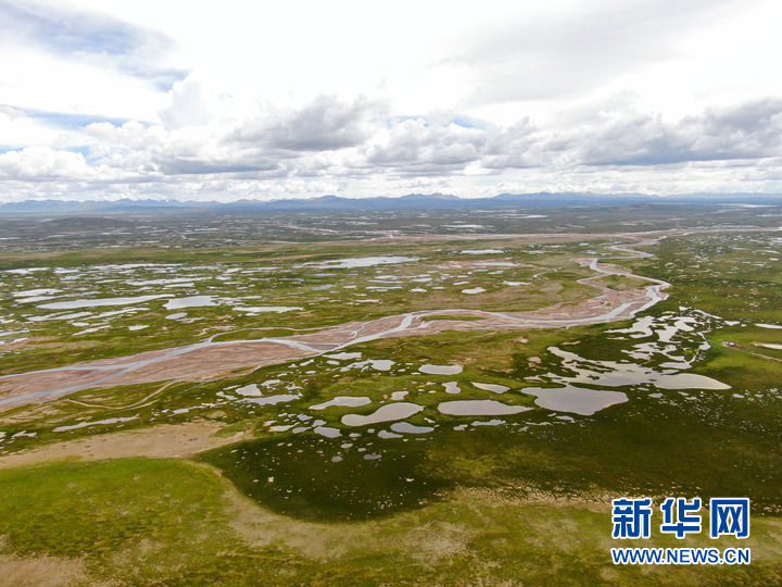 這是7月23日拍攝的長(zhǎng)江源地區(qū)的查旦濕地(無人機(jī)照片)。新華社記者 張龍 攝