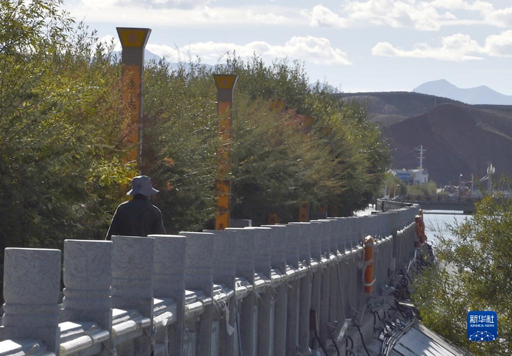 西藏阿里獅泉河鎮(zhèn)道路旁邊綠樹成蔭(9月19日攝)。新華社發(fā) (索朗羅布 攝)