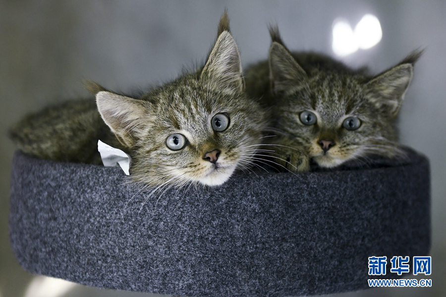 這是9月30日在西寧野生動(dòng)物園拍攝的人工救助的荒漠貓幼崽。新華社記者 張龍 攝