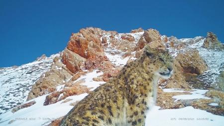 這些障礙沒攔住姜楠一行,約3個(gè)小時(shí)后,他們抵達(dá)了第一個(gè)雪豹觀測(cè)點(diǎn)。姜楠蹲下,檢查紅外相機(jī)拍攝到的畫面,確認(rèn)是否有野生動(dòng)物出現(xiàn)。相機(jī)完好無損并拍到雪豹,是最為理想的狀態(tài),但相機(jī)被毀壞也是常有的事。當(dāng)天,她的同事負(fù)責(zé)另一處觀測(cè)點(diǎn),上山后發(fā)現(xiàn)相機(jī)壞了,只能原路返回,再跑一趟。